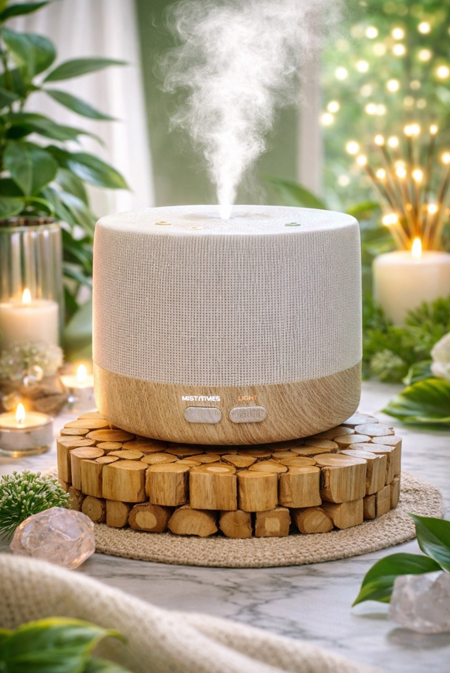 Good mood diffuser met water reservoir 500 ML, veranderd in wisselende kleuren, fijne huiszuiveraar, ultrasonische diffuser + GRATIS 4 flesjes essentiële olie / LAATSTE