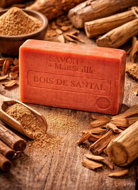 Biologische zeep met sandalwood, ze zuivert en verfrist je auraveld, 100 % puur natuurlijk, natuurzeep
