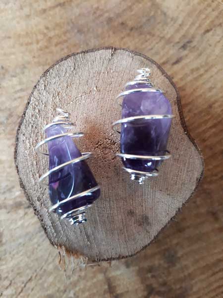 Amethist in verzilverde spiraal als hanger + GRATIS zwart koord