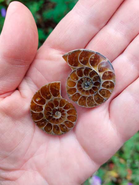 Prachtig Ammoniet paartje om ergens neer te leggen of bij je te dragen.
