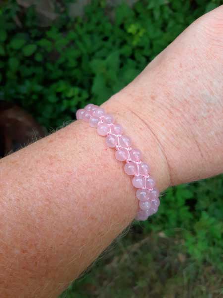 Mooie dubbel geregen armband vervaardigd uit rozenkwarts.