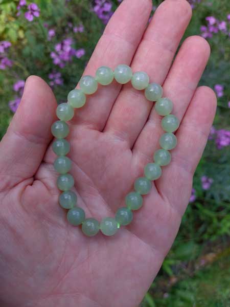 Armband uit Serpentijn – new Jade, ze helpt allerlei stralingen, ontspant je, helpt bij nervositeit + zakje