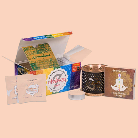 De 7 Chakra Aromafume wierookblokjes bevat 14 wierookblokjes, 2 per chakra: