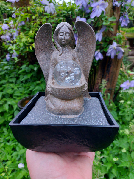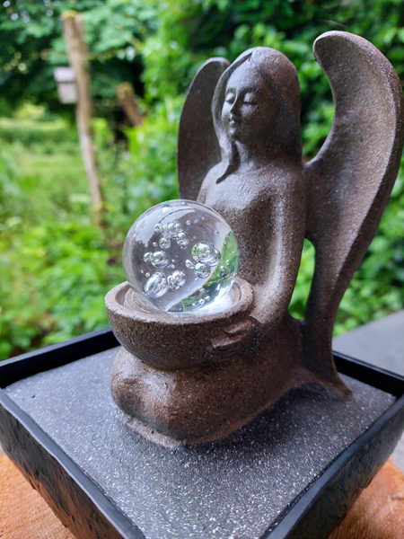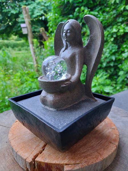 Beschermengel water fontein, rustgevend en sfeervol, het stromende water verhoogt de Feng Shui in een ruimte