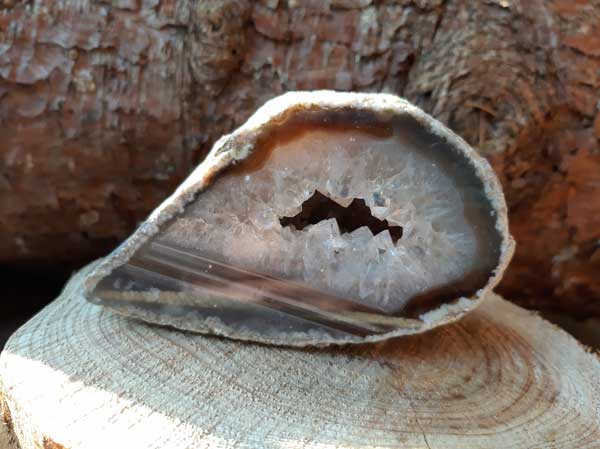 Bruine met witte Agaat geode transformeert negatieve energieën, vergroot je spirituele groei