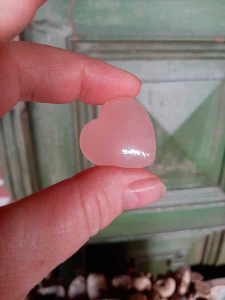 Een rozenkwart hartje om vast te pakken om je zelfliefde te vergroten.