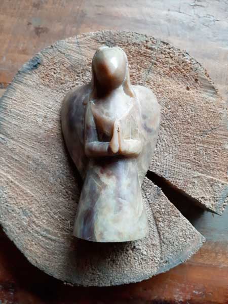 Ze is een bijzonder mooi asbeeldje in de vorm van een biddende engel die liefde en rust uitstraalt.