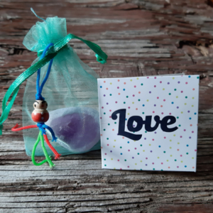 Gouden driehoek stenen, of waterstenen, ovo de ema – amethist, rozenkwarts en bergkristal in zakje + kaartje + uitleg