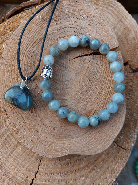HSP bescherming set met een armband met Boeddha + gladde of ruwe hanger uit labradoriet om je te beschermen + zakje
