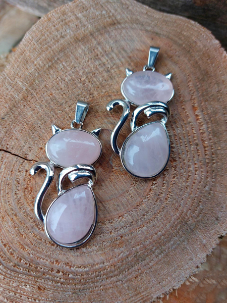HSP hanger als een kat / poes uit Rozenkwarts, ze vergroot en versterkt je zelfliefde + koord + organza zakje