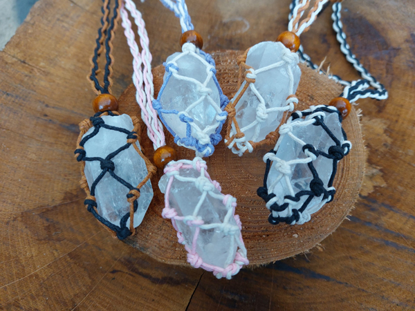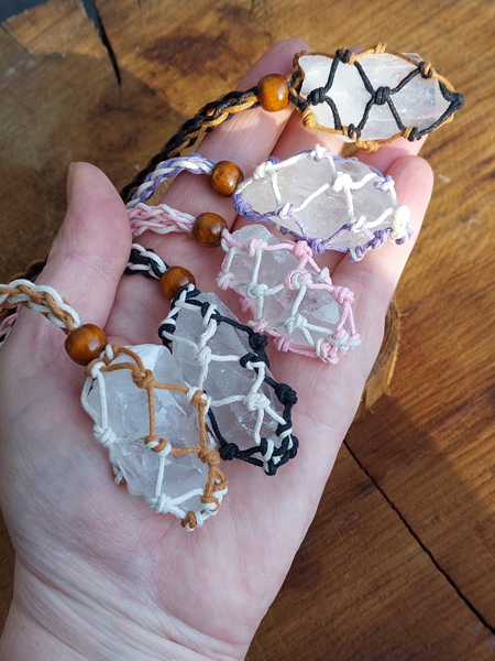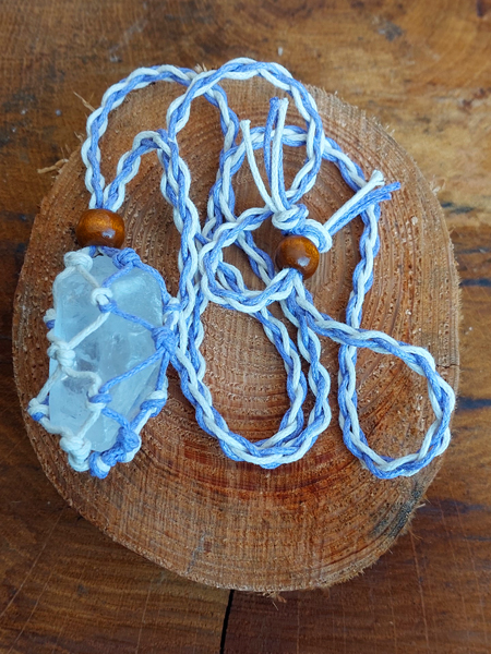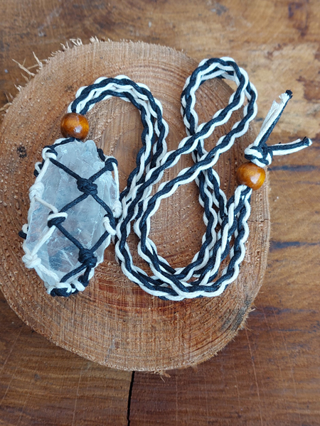 Mooie grote Bergkristal ruwe punt verwerkt in een Macramé hanger.