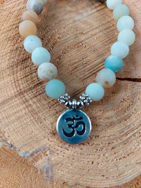 Mala armband uit amazoniet vergroot je intuïtie met medaillon met Ohm teken + zakje