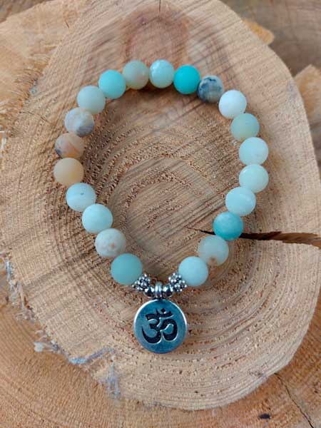 Mooie armband uit Amazoniet met een medaillon met het Ohm teken.