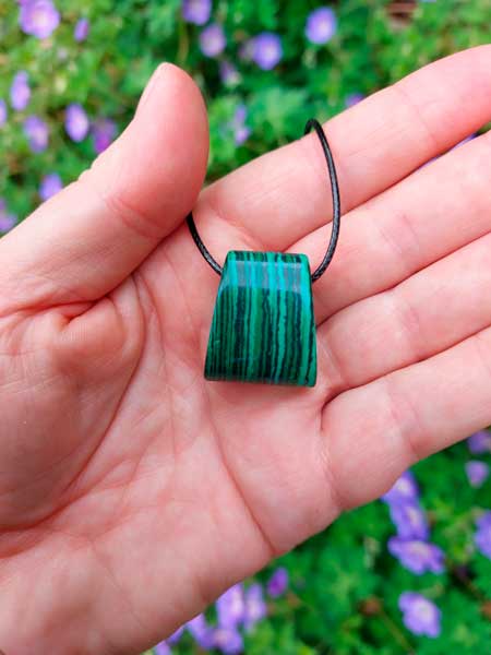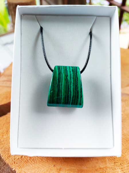 Malachiet hanger ondersteunt bij pijn, gewrichtsklachten, rugklachten, spanningen, stress + doosje