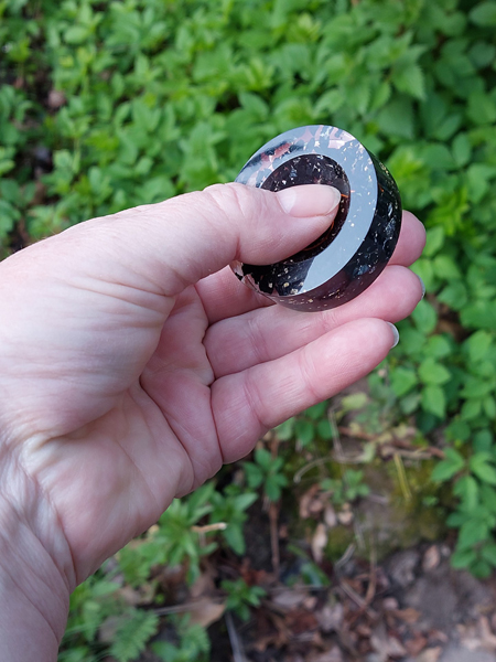 Mooie Orgonite, ze is gemaakt met van zwarte toermalijn en koper snippers