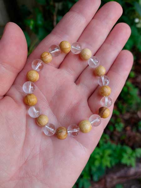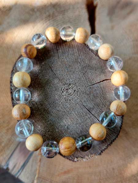 Palo Santo hout met bergkristal armband, voor een goede balans en beschermt je auraveld + organza zakje