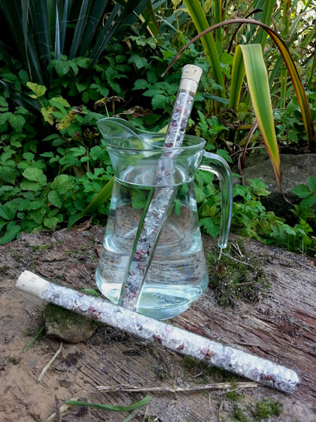 Neem de edelstenenbuis, zet deze in een glazen kan van 1 liter, gevuld met water en laat