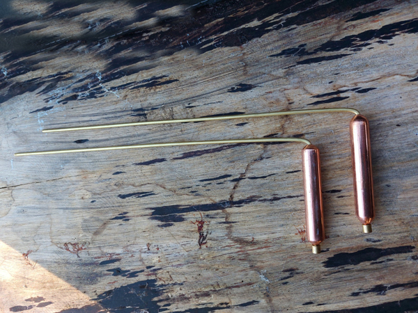 Wichelroede uit hoge kwaliteit messing met koper large, voor het opsporen van aardstralen of lelylijnen