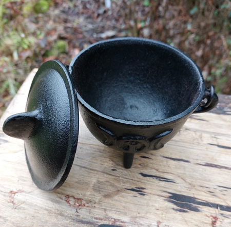 Een heksenketel wordt veel gebruikt in wierookrituelen o.a. met houtskool of wierook.
